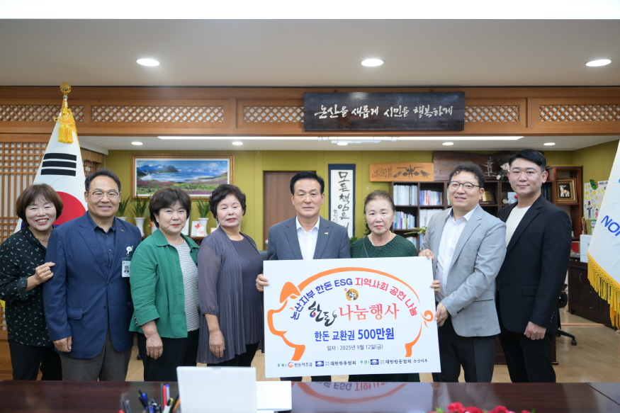¹é¼ºÇö ³í»ê½ÃÀåÀº ¡°°æ±â ħü·Î ¾î·Á¿î »óȲ ¼Ó¿¡¼­µµ º¯ÇÔ¾øÀÌ ÀÌ¿ô »ç¶ûÀ» ½ÇÃµÇØÁֽŠ(»ç)´ëÇÑÇѵ·Çùȸ ³í»ê½ÃÁöºÎ ¿©¼ºÈ¸¿Í »ç¶û³ª´®Áö±âºÀ»ç´Ü¿¡ Áø½ÉÀ¸·Î °¨»çµå¸°´Ù¡±¸ç ¡°±âÅ¹ÇØÁֽмº±Ý°ú ¹°Ç°Àº ³ª´®ÀÇ Å« ¶æÀ» ´ã¾Æ ÇÊ¿äÇÑ °÷¿¡ Åõ¸íÇÏ°Ô Àü´ÞÇϰڴ١±°í È­´äÇß´Ù.