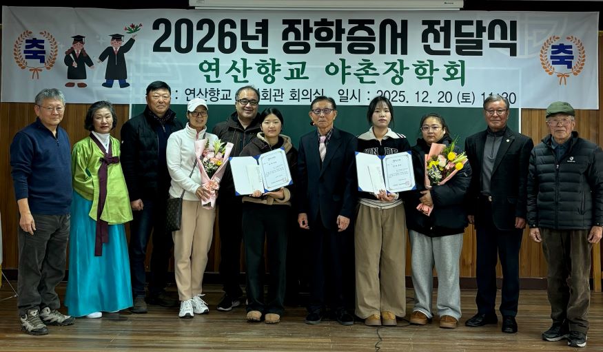 [ÃæÃ»ÇÖÀ̽´] ³í»êÀ» À̲ø¾î°¥ ÀÎÀç À°¼ºÀ» À§ÇÑ ¾ßÃÌÀåÇÐȸ ÀåÇÐ±Ý Àü´Þ½ÄÀÌ Áö³­ 20ÀÏ ¿¬»êÇâ±³ À¯¸²È¸°ü¿¡¼­ ¿­·È´Ù.