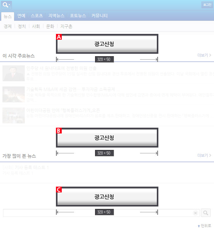 C . ž¸Þ´º ¿ìÃø¹è³Ê : ¸ÞÀÎÆäÀÌÁö »ó´Ü ¸Þ´º¿¡ Ãâ·Â