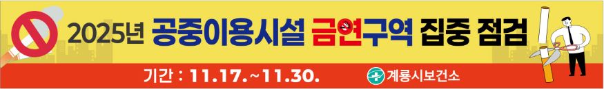 [ÃæÃ»ÇÖÀ̽´] °è·æ½Ã(½ÃÀå ÀÌÀÀ¿ì)´Â ½Ã¹ÎÀÇ °Ç° º¸È£¿Í ÄèÀûÇÑ °ø°øÈ¯°æ Á¶¼ºÀ» À§ÇØ 2025³â ±Ý¿¬±¸¿ª ÇÕµ¿Á¡°ËÀ» 11¿ù 17ÀϺÎÅÍ 11¿ù 30ÀϱîÁö 2ÁÖ°£ ½Ç½ÃÇÑ´Ù°í ¹àÇû´Ù.