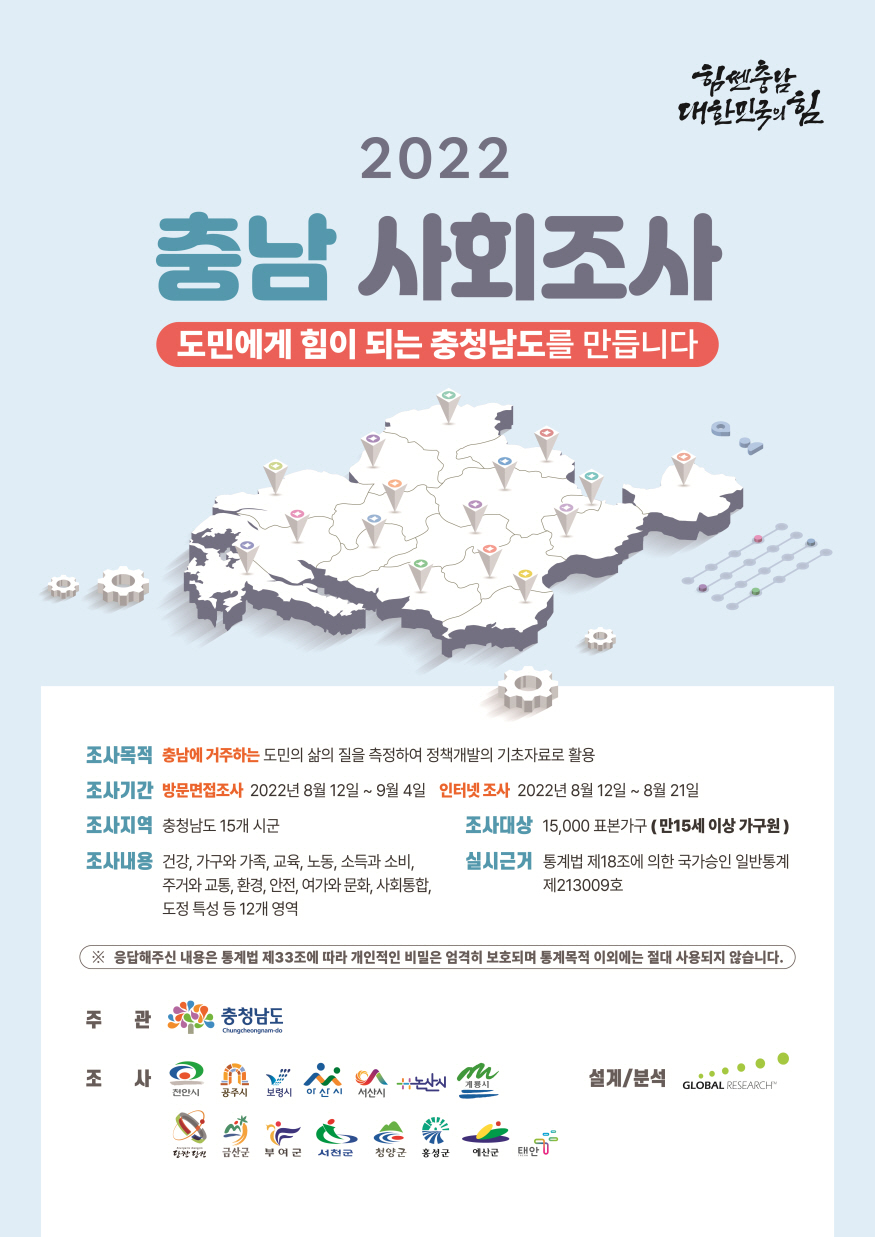 [ÃæÃ»ÇÖÀ̽´] °è·æ½Ã´Â ¿À´Â 12ÀϺÎÅÍ 9¿ù 4ÀϱîÁö °ü³» 690°¡±¸¸¦ ´ë»óÀ¸·Î ¡®2022 ÃæÃ»³²µµ »çȸÁ¶»ç¡¯¸¦ ½Ç½ÃÇÑ´Ù°í ¹àÇû´Ù.