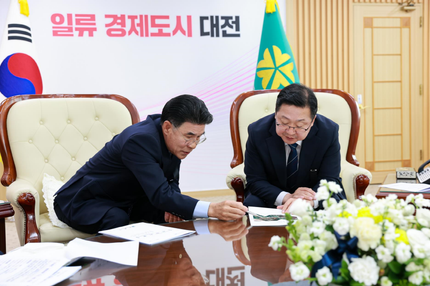 [ÃæÃ»ÇÖÀ̽´] Áö³­ 1ÀÏ ÀÌÀÀ¿ì °è·æ½ÃÀåÀº °è·æ½Ã¿Í Á¢ÇØÀÖ´Â ´ëÀü½Ã¿Í Çù¾÷ü°è ±¸ÃàÀ» À§ÇØ ÀÌÀå¿ì ´ëÀü½ÃÀåÀ» ¸é´ãÇÏ°í µÎ°èõ »ýŰø¿ø Á¶¼º»ç¾÷°ú, °è·æ½Ã »ó¼öµµ º¹¼±È­»ç¾÷ ÃßÁø¿¡ ´ëÇØ ´ëÀü½ÃÀÇ ÇùÁ¶¸¦ ´çºÎÇß´Ù.