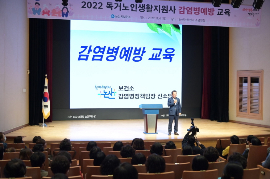 [ÃæÃ»ÇÖÀ̽´] ³í»ê½Ã(½ÃÀå ¹é¼ºÇö)°¡ Áö³ 4ÀÏ ³í»ê¾ÆÆ®¼¾ÅÍ¿¡¼ °ü³» ¡®µ¶°Å³ëÀÎ »ýȰÁö¿ø»ç¡¯¸¦ ´ë»óÀ¸·Î °¨¿°º´ ¿¹¹æ±³À°À» ½Ç½ÃÇß´Ù.