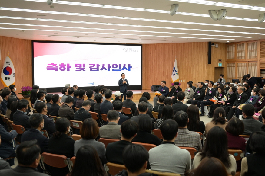 [ÃæÃ»ÇÖÀ̽´] ³í»ê½Ã(½ÃÀå ¹é¼ºÇö) Áö³ 1ÀÏ ½Ãû ȸÀǽǿ¡¼ 2¿ù ¿ù·Ê¸ðÀÓÀ» °³ÃÖÇß´Ù. 2023³â µé¾î ¿¸° ù ¿ù·Ê¸ðÀÓÀ¸·Î, ½Ã¹Î°ú °øÁ÷ÀÚ µî 200¿© ¸íÀÌ ÇÔ²² ÀÚ¸®Çß´Ù.