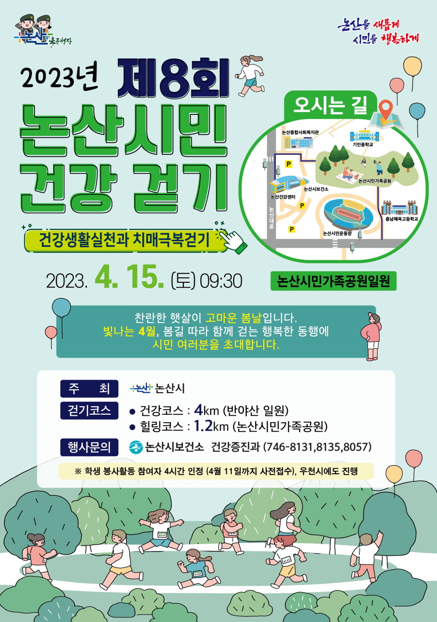 [ÃæÃ»ÇÖÀ̽´] ³í»ê½Ã(½ÃÀå ¹é¼ºÇö)°¡ ¡®Á¦51ȸ º¸°ÇÀÇ ³¯¡¯(4¿ù 7ÀÏ)À» ¸Â¾Æ °Ç° ºÐÀ§±â¸¦ ºÏµ¸´Â Ưº°ÇÑ °È±â Çà»ç¸¦ °³ÃÖÇÑ´Ù.