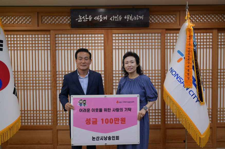 ³í»ê½Ã(½ÃÀå ¹é¼ºÇö)´Â Áö³ 7ÀÏ ³í»ê½Ã³¶¼ÛÀÎȸ(ȸÀå ±èºÀ¼÷)°¡ ½ÃûÀ» ã¾Æ ÀÌ¿ôµ½±â ¼º±Ý 100¸¸ ¿øÀ» ±âŹÇß´Ù°í 8ÀÏ ¹àÇû´Ù.