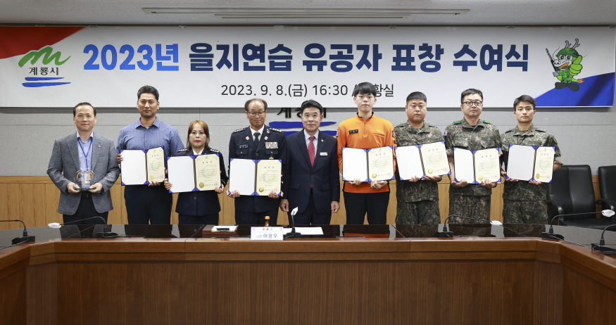 [ÃæÃ»ÇÖÀ̽´] °è·æ½Ã(½ÃÀå ÀÌÀÀ¿ì)´Â Áö³ 8¿ù 21ÀϺÎÅÍ 24ÀϱîÁö 4Àϰ£ ½Ç½ÃÇÑ ¡®2023³â À»Áö¿¬½À¡¯À» ¼º°øÀûÀ¸·Î ¸¶¹«¸®Çϰí, ºñ»ó ´ëºñż¼ È®¸³¿¡ ±â¿©ÇÑ À¯°øÀÚ 15¸í¿¡°Ô ǥâÀ» ¼ö¿©Çß´Ù°í ¹àÇû´Ù.
