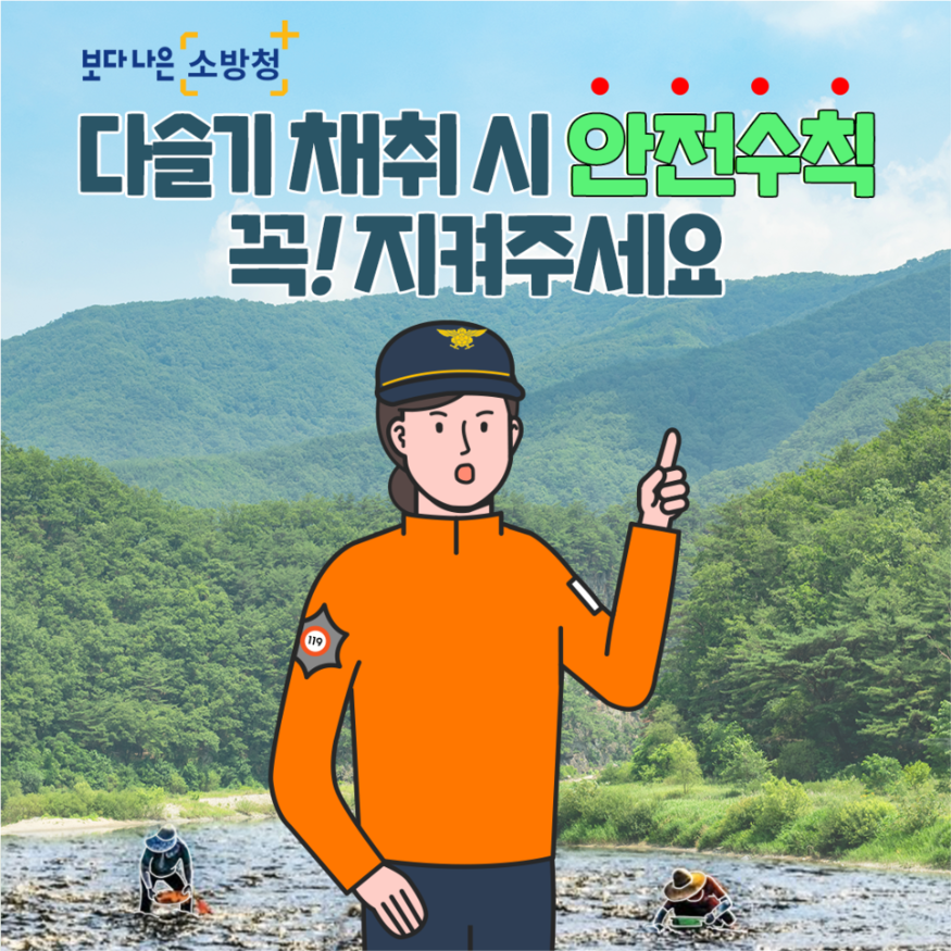 ´Ù½½±â äÃë Àü »çÀü¿¡ ÁöÇü ¼÷Áö, äÃë Àü ±¸¸íÁ¶³¢ Âø¿ë, äÃë Àå¼ÒÀÇ ±¸¸íȯ µî ¾ÈÀüÀåºñ À§Ä¡ ÆÄ¾Ç, äÃë Áß ÁÖÀ§ ÁÖ±âÀû È®ÀÎ, À½ÁÖ »óÅ ¹× ¾ß°£ ´Ù½½±â äÃë ±ÝÁö µî ÁÖÀÇ»çÇ×°ú ¾ÈÀü¼öÄ¢À» ÁöÄÑ¾ß ÇÑ´Ù.