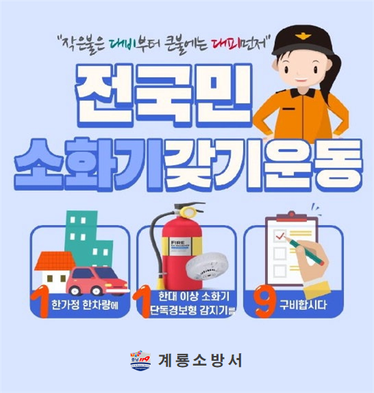 Àü ½Ã¹Î ¼Òȱ⠰®±â ¿îµ¿Àº '1(ÇϳªÀÇ °¡Á¤¡¤Â÷·®¿¡) 1(ÇÑ´ëÀÌ»ó ¼Òȱ⡤°¨Áö±â¸¦) 9(±¸ºñ) ÇսôÙ'¶ó´Â È«º¸ ½½·Î°ÇÀ¸·Î ÁÖÅÃÈÀç ¶Ç´Â Â÷·®ÈÀç ¹ß»ý ½Ã ½Å¼ÓÇÑ Ãʱâ´ëÀÀÀ¸·Î ÇÇÇØ¸¦ ÃÖ¼ÒÈÇÏÀÚ´Â ¿îµ¿ÀÌ´Ù.