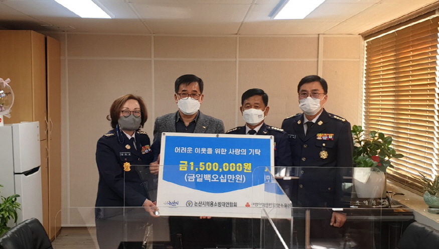 ³í»ê¼Ò¹æ¼ÀÇ¿ë¼Ò¹æ´ë¿¬ÇÕȸ´Â 27ÀÏ ³í»ê½ÃûÀ» ã¾Æ Äڷγª19·Î À¯µ¶ Ãä°í ¾î·Á¿î ³¯À» º¸³»°í ÀÖÀ» ÀÌ¿ô¿¡°Ô ÀǹÌÀÖ°Ô ¾²ÀÏ ¼ö ÀÖµµ·Ï »ç¶ûÀÇ ¼º±Ý 150¸¸¿øÀ» ±âŹÇÏ¿´´Ù.