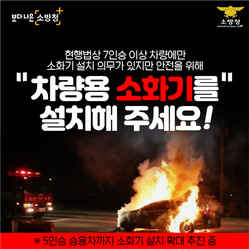 [ÃæÃ»ÇÖÀ̽´] °è·æ¼Ò¹æ¼­(¼­Àå ÃÖÀåÀÏ)´Â Â÷·® È­Àç ¹ß»ý ½Ã ½Å¼ÓÇÑ ´ëÀÀÀ¸·Î Àθí¤ýÀç»êÇÇÇØ¸¦ ¹æÁöÇϱâ À§ÇØ Â÷·®¿ë ¼ÒÈ­±â ºñÄ¡¸¦ È«º¸ÇÑ´Ù°í ¹àÇû´Ù.