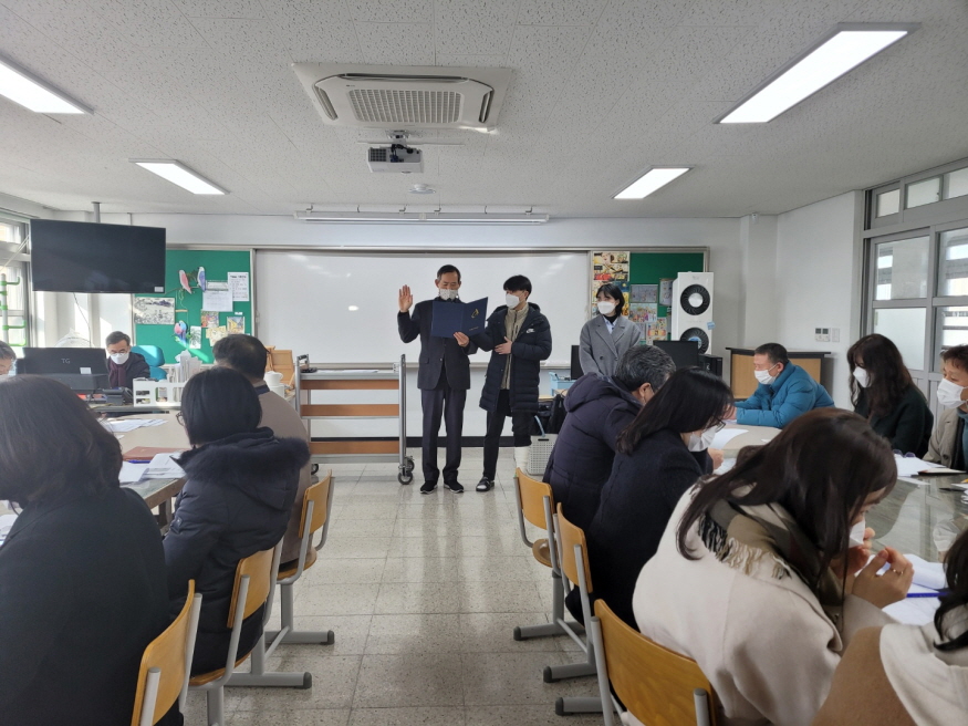³í»ê¿©ÁßÀº ±³À°°úÁ¤ Â¥±â ÇùÀÇȸ¿¡ ¾Õ¼ Çб³ÀåÀÌ ½Å±Ô±³»ç 2¸í°ú ÇÔ²² Àü±³Á÷¿ø ¾Õ¿¡¼ ¹ÝºÎÆÐ û·Å ¼¾à¼¸¦ ³¶µ¶Çß´Ù.