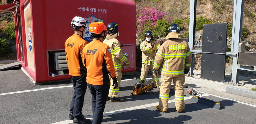 À̹ø ÈÆ·ÃÀº Äڷγª19 ¿¹¹æ¼öÄ¢ Áؼö ¹× ¾ÈÀü»ç°í »çÀü ¹æÁö ±³À° ½Ç½Ã ÈÄ °è·æ119¾ÈÀü¼¾ÅÍÀå ÁöÈÖÇÏ¿¡ ÁøÇàµÇ¾úÀ¸¸ç, ÇöÀåȰµ¿ ´ëÀÀ ¸Å´º¾ó¿¡ µû¶ó ¹æÈ­¹® °³¹æ ¹× ¾ÈÀüÁ¶Ä¡¸¦ ÅëÇÏ¿© °¢Á¾ Àç³­ÇöÀå¿¡¼­ ½Å¼ÓÇÑ °Ç¹° ³» ÁøÀÔ´É·Â Çâ»ó°ú ¹æÈ­¹® °³¹æ ÆÄ±«±â±¸ Ȱ¿ë ¼÷´Þ ÈÆ·ÃÀ» ½Ç½ÃÇß´Ù.