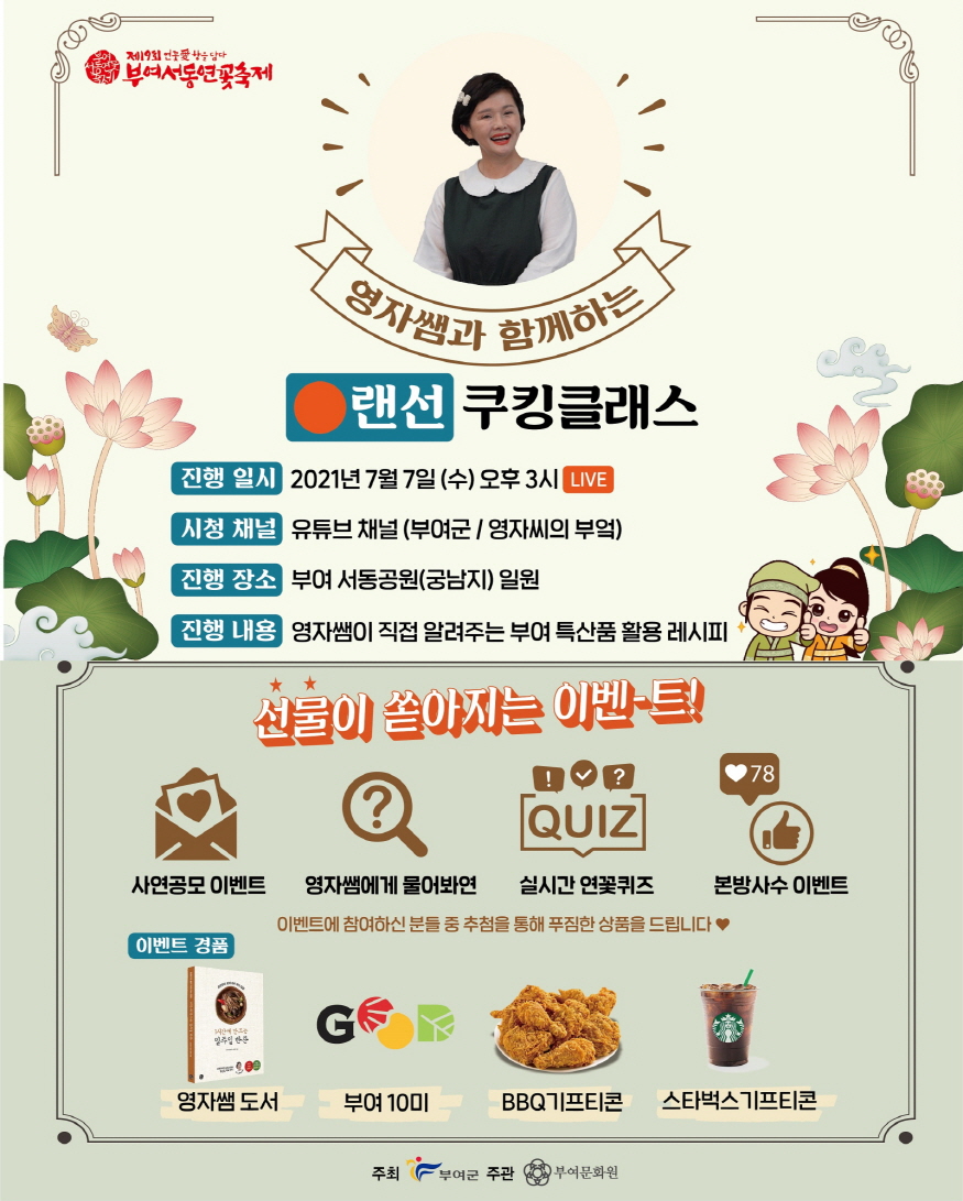 [ÃæÃ»ÇÖÀ̽´] ºÎ¿©±º(±º¼ö ¹ÚÁ¤Çö)Àº Á¦19ȸ ºÎ¿©¼­µ¿¿¬²ÉÃàÁ¦ÀÇ ÀÏȯÀ¸·Î ¿À´Â 7¿ù 7ÀÏ ¿ÀÈÄ 3½Ã¿¡ ¡®¿µÀڽܰú ÇÔ²²ÇÏ´Â ·£¼± ÄíŷŬ·¡½º¡¯ ÇÁ·Î±×·¥À» ¿î¿µÇÑ´Ù°í ¹àÇû´Ù.
