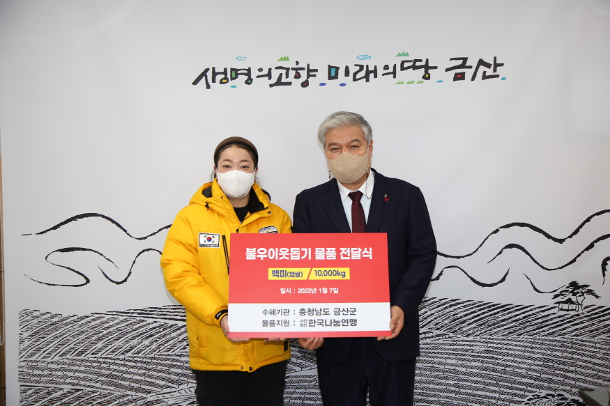 Çѱ¹³ª´®¿¬¸Í(ÀÌ»çÀå ¾È¹Ì¶õ)Àº Áö³­ 7ÀÏ ¾î·Á¿î ÀÌ¿ôÀ» À§ÇØ ½á´Þ¶ó¸ç ±Ý»ê±º¿¡ 3300¸¸ ¿ø »ó´ç ¹é¹Ì 1¸¸kgÀ» ±âŹÇß´Ù.