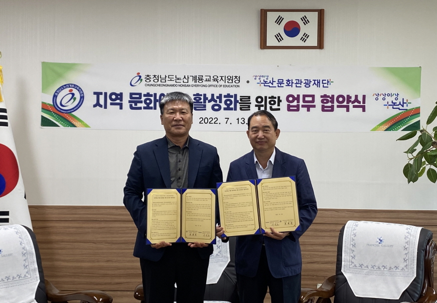 [ÃæÃ»ÇÖÀ̽´] Ãæ³² ³í»ê°è·æ±³À°Áö¿øÃ»(±³À°Àå Á¤¿ø¸¸)Àº 13ÀÏ ±³À°Àå½Ç¿¡¼ Áö¿ª ¹®È¿¹¼ú üÇè Ȱ¼ºÈ¸¦ À§ÇØ (Àç)³í»ê¹®È°ü±¤Àç´Ü°ú ¾÷¹«Çù¾àÀ» ¸Î¾ú´Ù.