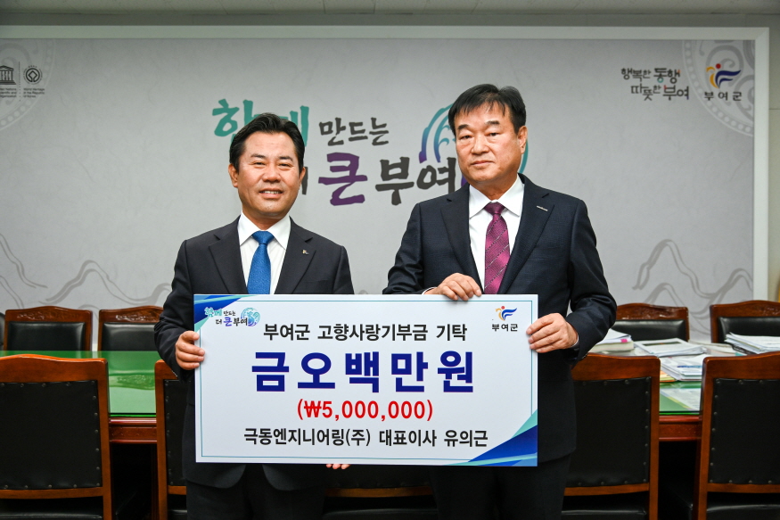 Áö³­ 11¿ù 29ÀÏ ºÎ¿©±º(±º¼ö ¹ÚÁ¤Çö)À» ¹æ¹®ÇÑ ±Øµ¿¿£Áö´Ï¾î¸µ(ÁÖ) À¯ÀDZ٠´ëÇ¥À̻簡 °íÇâ¹ßÀüÀ» À§ÇØ °íÇâ»ç¶û±âºÎÁ¦ 1³â ÃÖ°í Çѵµ¾×ÀΠ500¸¸¿øÀ» ÈçÄèÈ÷ ±âºÎÇß´Ù.