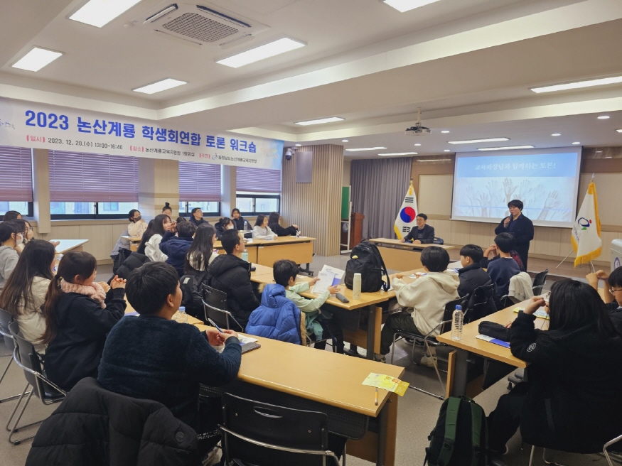 [ÃæÃ»ÇÖÀ̽´] ³í»ê°è·æ±³À°Áö¿øÃ»(±³À°Àå ÀÌÁ¤¼®)Àº Áö³­ 20ÀÏ(¼ö) ÃÊ¡¤Áß¡¤°íµîÇб³ Çлýȸ ÀÓ¿øµé 73¸íÀÌ Âü¼®ÇÑ °¡¿îµ¥ ÇлýÀÇ ¹ÎÁֽùΠ¿ª·® °­È­¸¦ À§ÇÑ ³í»ê°è·æ Çлýȸ¿¬ÇÕ Åä·Ð ¿öÅ©¼óÀ» ½Ç½ÃÇß´Ù°í ÀüÇß´Ù.