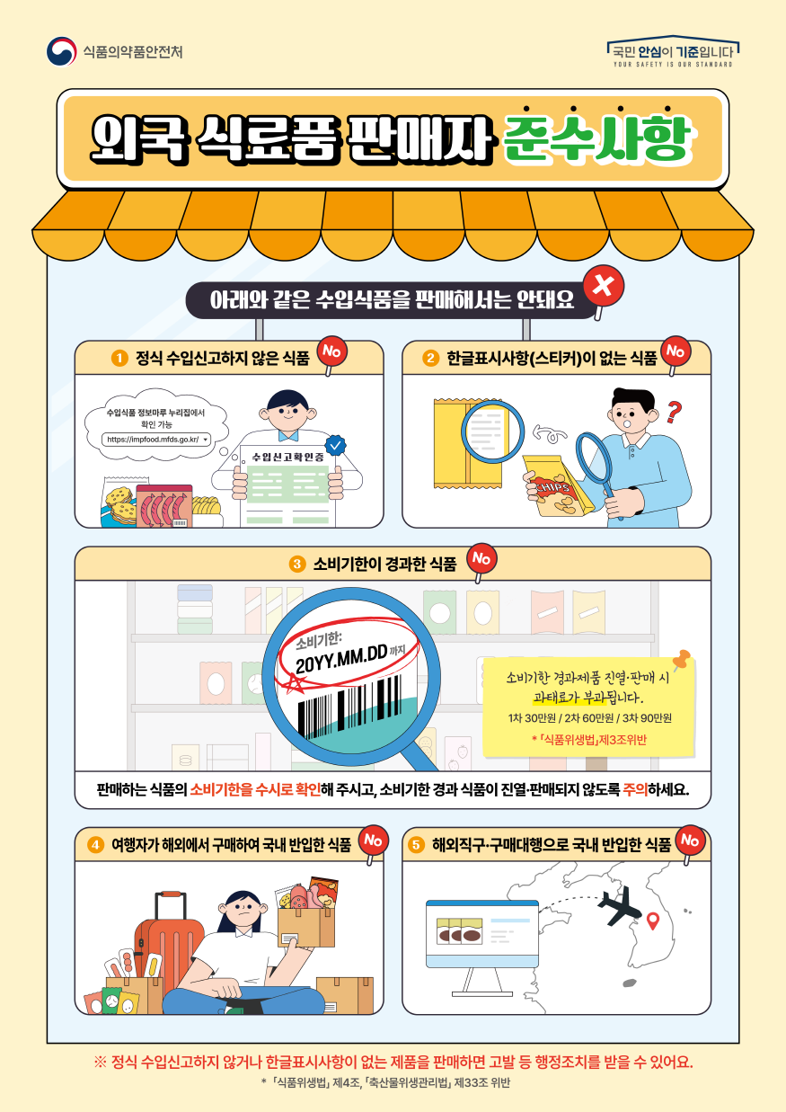 À̹ø Á¡°Ë¿¡¼´Â ¡â¼Òºñ±âÇÑ °æ°ú Á¦Ç° Áø¿¡¤º¸°ü¡¤ÆÇ¸Å¡¤»ç¿ë ¿©ºÎ ¡â¹«½Å°í¡¤¹«Ç¥½Ã Á¦Ç°ÀÇ À¯Å롤ÆÇ¸Å ¿©ºÎ ¡â³ÃÀ塤³Ãµ¿ Á¦Ç°ÀÇ ÀûÁ¤ º¸°ü ¿©ºÎ µîÀ» ÁßÁ¡ÀûÀ¸·Î È®ÀÎÇÒ ¿¹Á¤ÀÌ´Ù. ¶ÇÇÑ, ¿µ¾÷ÀÚµéÀÌ ÀÚÀ²ÀûÀ¸·Î À§»ý°ü¸®¸¦ ÇÒ ¼ö ÀÖµµ·Ï ¿Ü±¹½Ä·áǰ ÆÇ¸Å¾÷¼Ò¿¡ Áؼö»çÇ×À» Àû±ØÀûÀ¸·Î È«º¸ÇÒ ¿¹Á¤ÀÌ´Ù.