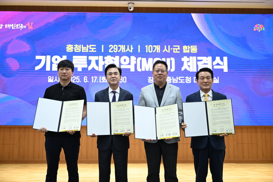 [ÃæÃ»ÇÖÀ̽´] ³í»ê½Ã(½ÃÀå ¹é¼ºÇö)´Â 17ÀÏ Ãæ³²µµÃ» ´ëȸÀǽǿ¡¼­ 2°³ ±â¾÷°ú ÃÑ 130¾ï ¿ø ±Ô¸ðÀÇ ÇÕµ¿ ÅõÀÚÇù¾à(MOU)À» ü°áÇß´Ù°í ¹àÇû´Ù.