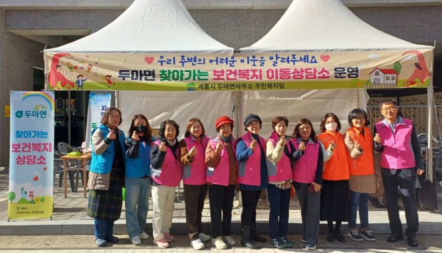 [ÃæÃ»ÇÖÀ̽´] °è·æ½Ã µÎ¸¶¸é»ç¹«¼Ò(¸éÀå ¼­Çöö)´Â 11ÀÏ °è·æ´ë½Ç LH4@´ÜÁö ³»¿¡¼­ ¡°Ã£¾Æ°¡´Â º¸°Çº¹Áö¼­ºñ½º À̵¿»ó´ã¼Ò¡± ¿î¿µ µî º¹Áö Ãë¾à°èÃþ ¹ß±¼À» À§ÇÑ È«º¸ Ä·ÆäÀÎÀ» ÁøÇàÇß´Ù°í ¹àÇû´Ù.