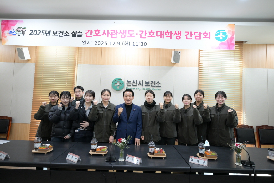 ³í»ê½Ã(½ÃÀå ¹é¼ºÇö)´Â Áö³­ 9ÀÏ ³í»ê½Ãº¸°Ç¼Ò¿¡¼­ ÀÓ»ó½Ç½À °úÁ¤¿¡ Âü¿© ÁßÀÎ °£È£´ëÇлý 10¸íÀ» ´ë»óÀ¸·Î °£´ãȸ¸¦ ¿­°í °Ý·Á¿Í ¼ÒÅëÀÇ ½Ã°£À» °¡Á³´Ù°í ¹àÇû´Ù.