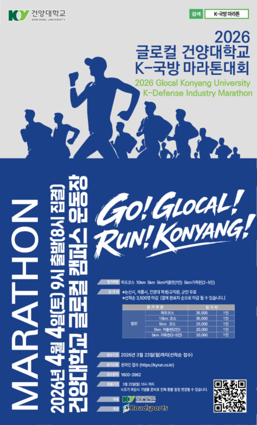 [ÃæÃ»ÇÖÀ̽´=ÀÌÈ­Áø ±âÀÚ] °Ç¾ç´ëÇб³¿Í ÇÔ²²ÇÏ´Â ´ë±Ô¸ð ¸¶¶óÅæ ÃàÁ¦ÀÎ ¡®2026 ±Û·ÎÄà °Ç¾ç´ëÇб³ K-±¹¹æ¸¶¶óÅæ´ëȸ¡¯°¡ ¿À´Â 4¿ù 4ÀÏ °³ÃֵȴÙ.